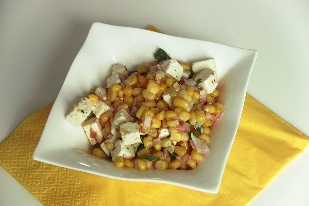- Égouttez la feta aux herbes. Mélangez l'ensemble des ingrédients et conservez au frais jusqu'au service. Ajoutez un peu de coriandre supplémentaire pour décorer avant de servir.